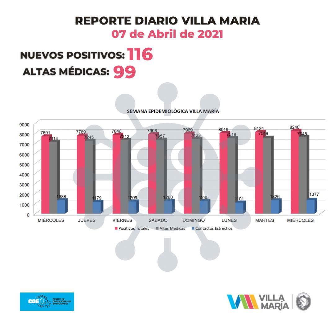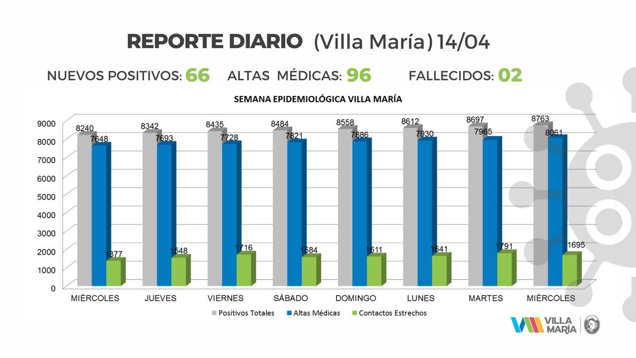 En materia de contagios, el último informe emitido por el municipio, en Villa María se sumaron 66 casos y 96 altas médicas. Actualmente, hay 2260 personas aisladas y 565 vecinos y vecinas que aún transitan… Covid-19: Se registraron otras 2 muertes en Villa María