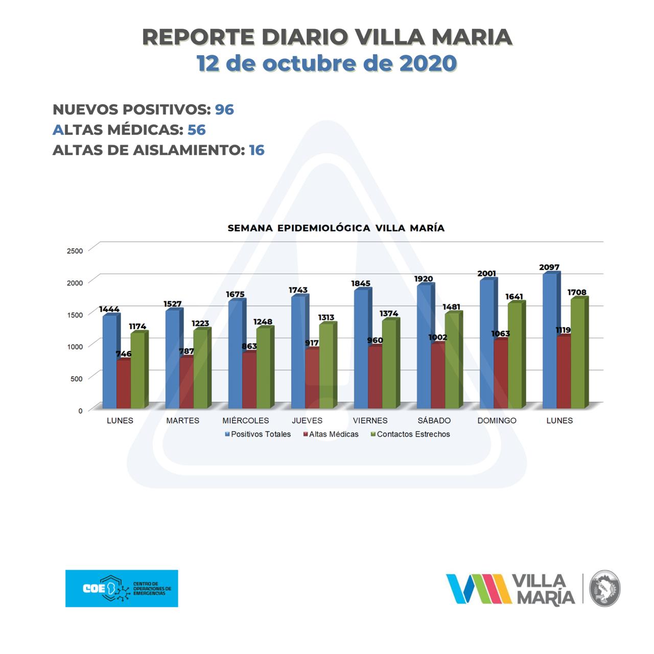 Coronavirus: Villa María tuvo 151 casos y Villa Nueva 37