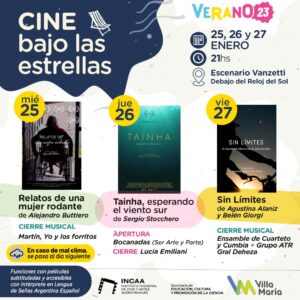 Sin Límites de Agustina Alaniz y Belén Giorgi será la película. El cierre musical será del Ensamble de Cuarteto y Cumbia + Grupo ATR de General Deheza.