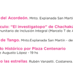 La municipalidad presentó la agenda de actividades culturales para el verano. Las mismas tendrán lugar en espacios como la costanera pero también en la Tecnoteca, Medioteca, entre otras. Alguna de ellas son El Festival del Acordeón, el Festival de Tango.
