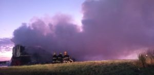 El siniestro fue a la altura del kilómetro 629, y según la Policía, originó el incendio el reventón de un neumático.