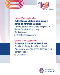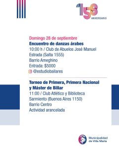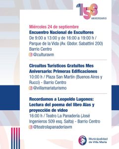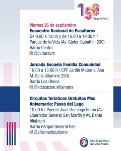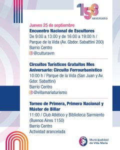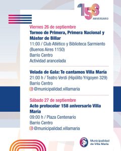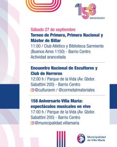 Este sábado 27 de septiembre, Villa María celebra un aniversario más, con muchas actividades que se desarrollan desde la semana pasada en la ciudad.